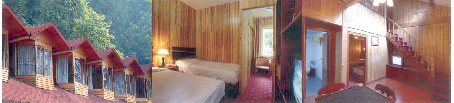 度假村建筑絕大多數采用木質建筑,溫泉采暖引入每間客房,一座座紅瓦別墅掩映在原始森林中,裊裊蒸汽從溫泉池中升騰,恍若人間仙境。度假村可接待140人住宿,170人就餐,800人同時泡溫泉。冬天,周圍積著厚厚的白雪,屋檐下掛著一米多長的冰凌,泡在藍汪汪的溫泉里,看松鼠在旁邊覓食,真是一大享受。