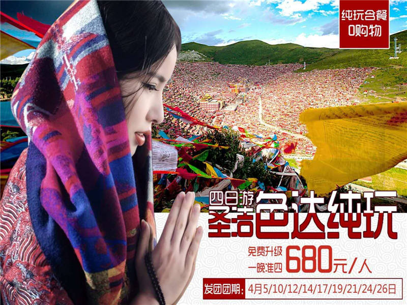 早餐后集合出發,順著317國道沿色曲河北上經翁達鎮前往盛產黃金的地方——色達,午餐后前往尸陀林景區觀看天葬,感受藏族喪葬習俗。成百上千的禿鷲在上空盤旋,帶領逝者往生極樂,場面之壯觀,不由得讓你感嘆人生,更加珍惜生命。迦羿l到天葬臺,擺渡費用往返40元/人,自理,必須消費。為保障安全,使用隨團旅游車,往返10公里左右,海拔高度達4000米,);之后返回進入佛學院(公交車自理,3元/人,也可選擇步行),感受、遨游那一片紅色海洋——喇榮五明佛學院;震撼的畫卷漸漸呈現在眼前——漫山遍野的紅房子,裹著紅袍的行人在其間穿行,金碧輝煌的學院,藍天白云下氣勢宏偉的壇城(海拔4000米);會當凌絕頂、一覽學院景,訴說您的祈愿,整個山谷,紅色一片,炊煙裊裊,光影游走,風吹云動,身在此地,內心寧靜·················觀絕妙夜景后集合回到酒店休息(為讓大家能盡情游玩,晚餐不含,請自備食物或者自行在學院內餐廳切身感受素食)
