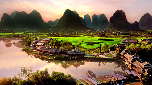上午:后徒步游覽寧靜秀美的【遇龍河】(不含交通車50元/人,約60分鐘)。這如詩如畫的風光,青山、綠水、古橋、小樹,無處不讓人魂牽夢繞。微風的呼聲,小鳥的鳴叫,水車的咕咕聲,山歌的對唱,還有田野里的陣陣蛙叫和遠處山村隱約傳出的雄雞高歌,都充滿了詩情畫意,可謂神清氣爽,滿目皆畫。是久居都市的人們欲罷不能的親近感油然而生,恨不得立即與這山水溶為一體。 【多耶古寨】,不落鎖的大門見證了侗家人的信仰——薩崇拜:侗族家人不許偷;枯井,古香古色的石板小巷,灰白的青磚墻訴說著侗族的歷史,侗族的文化,讓我們走進他們家里做客,真正了解侗族這個少數民族的民族文化,感受村民古老、恬靜、悠慢的生活。【國家正規掛牌3A級景區,景區門票50元/人,如因特殊原因去不了我公司承諾退還門票50元/人(不可抗力因素影響、航班原因和客人自身原因不去的除外)】。 【訾洲·象山】(約60分鐘),訾洲呈條形如舟浮水中,漓水環繞,在訾洲觀景臺上以最近、最清晰的角度欣賞到桂林城徽象鼻山;東可望七星山、穿山、塔山,西可觀疊彩山、伏波山、獨秀峰、雉山、南溪山、斗雞山;若恰好是在煙雨彌漫的時節游覽,云紗霧幔將訾洲籠罩在一片朦朧之中,猶如一幅水墨畫卷,充滿詩情畫意,這就是譽滿八桂的“訾洲煙雨”美景。 觀看大型舞臺秀【山水間】(約60分鐘)這是一臺應用國際一流舞臺技術、以桂林風情歌舞與精品雜技綜合表演藝術形式、以一個奇特的角度為觀眾講述桂林山水故事的旅游舞臺秀。全劇以桂林地域文化為根脈,以“游客”一角為引線串聯全篇,將桂林群峰之形、秀水之態、人物之色、田園之美、神仙之奇和生活之趣揉入跌宕起伏的劇情,以神奇玄幻的藝術表現手法為觀眾打造全景視聽體驗。